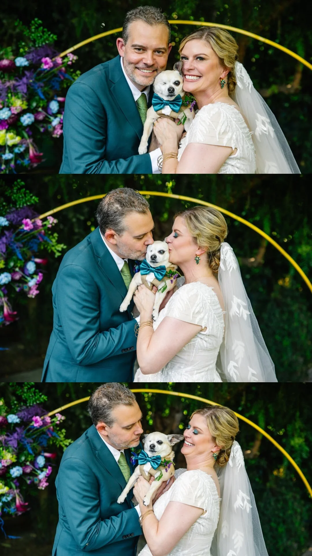 We take care of every detail of your dog’s wedding-day experience, including safe, reliable pet taxi transportation, ceremony assistance, greeting guests, brushing and styling in ceremony attire, spritzing with pet pawfume, plus plenty of walks, treats, hydration, and potty breaks.